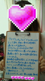 アイグラッチェさんで ブライダルエステをして頂き、本当に幸せな時間を過ごすことが出来ました。