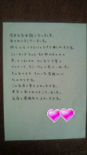 本日は急な予約にも関わらず、心良くお受けして頂きありがとうございました。