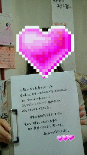 ブライダルシェービングが終わり、「わぁっ!(*^^*)」…と、笑顔の瞳さん…その体感・感想をお願いすると「どんな風に書いていいのか分からない(^^)」と仰りながらも、ペンを走らせてくださいました。